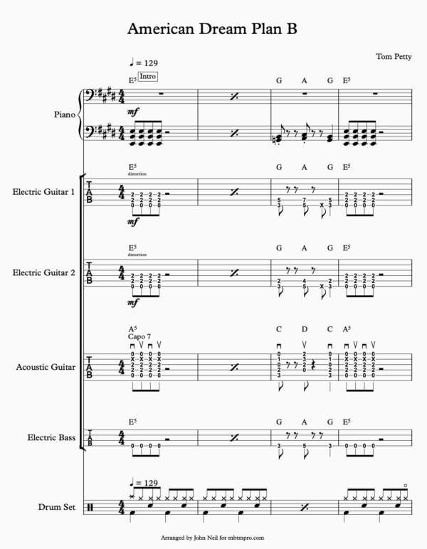 Full Band Sheet Music for “American Dream Plan B” By Tom Petty
