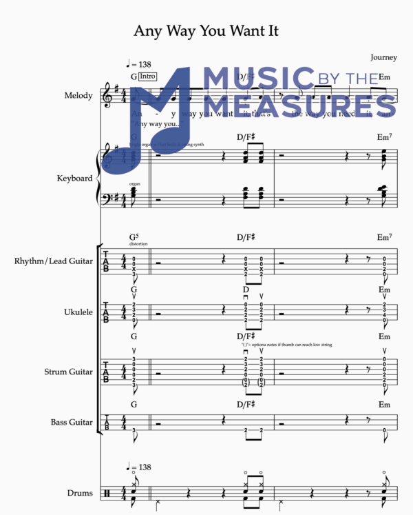 Full Band Sheet Music for “Any Way You Want It” by Journey