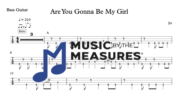 Bass Guitar Tablature for “Are You Gonna Be My Girl” by Jet