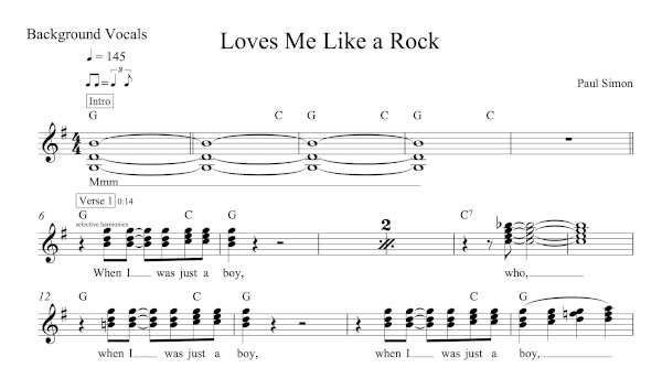 Background Melody Sheet Music for “Loves Me Like a Rock” by Paul Simon.