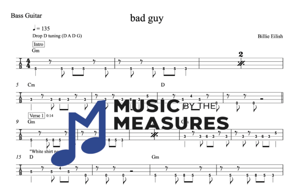 Bass Guitar Tablature for “bad guy” by Billie Eilish