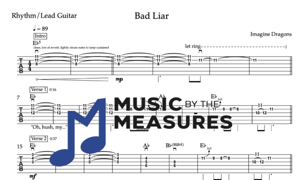 Lead Guitar Tablature for “Bad Liar” by Imagine Dragons