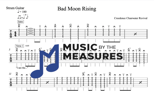 You need to be a member to be able to purchase this tab. Sign up nowStrum Guitar Tablature for “Bad Moon Rising” by Creedence Clearwater Revival