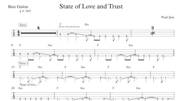 Bass Guitar Tablature for “State of Love and Trust” by Pearl Jam.