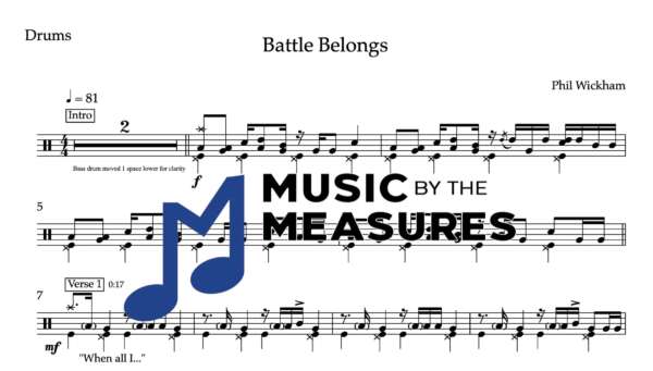 Drum Sheet Music for “Battle Belongs” by Phil Wickham