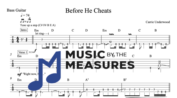 Bass Guitar Tablature for “Before He Cheats” by Carrie Underwood