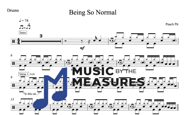 Drum Sheet Music for “Being So Normal” by Peach Pit
