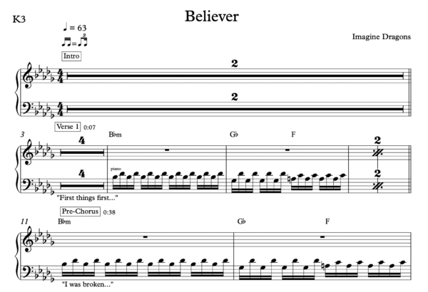 Keyboard Sheet Music for “Believer” By Imagine Dragons