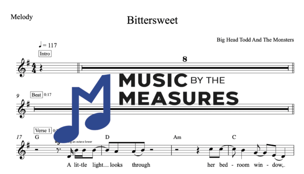 Melody Sheet Music for “Bittersweet” by Big Head Todd And The Monsters