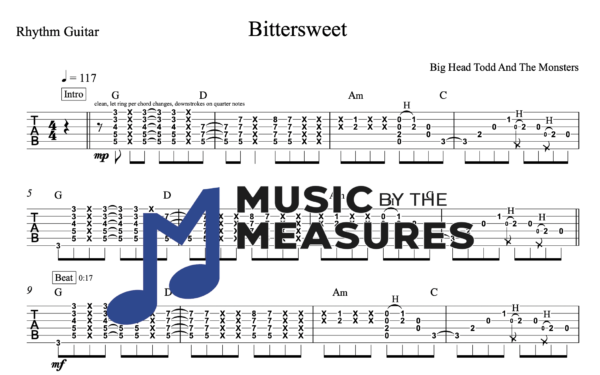 Rhythm Guitar Tablature for “Bittersweet” by Big Head Todd And The Monsters