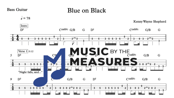 Bass Guitar Tablature for “Blue on Black” by Kenny Wayne Shepherd