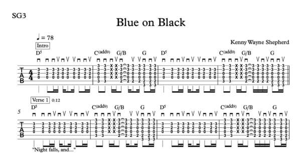Strum Guitar Tablature for “Blue on Black” by Kenny Wayne Shepherd