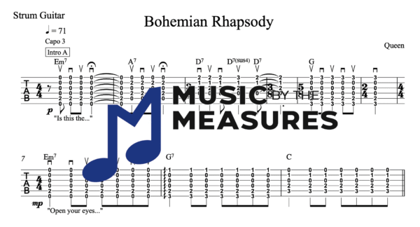 Strum Guitar Tablature for “Bohemian Rhapsody” by Queen