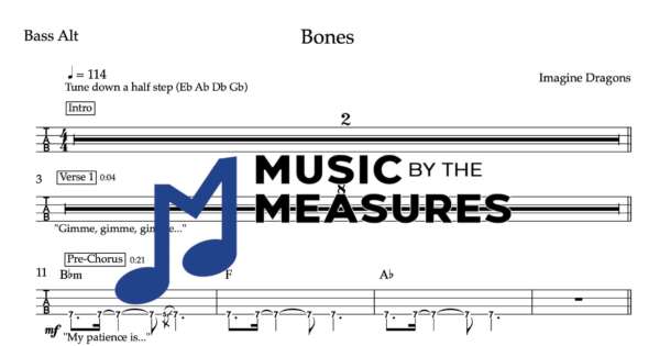 You need to be a member to be able to purchase this tab. Sign up nowBass Guitar Tablature for “Bones” by Imagine Dragons – Alternate part – 4 string bass