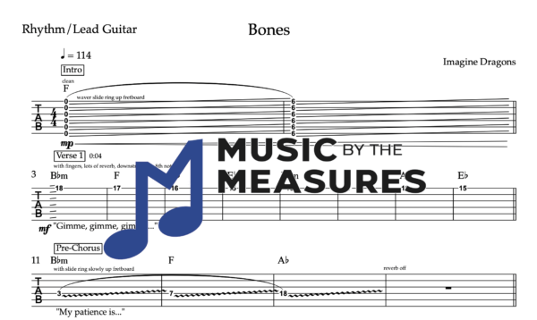 Rhythm Guitar Tablature for “Bones” by Imagine Dragons