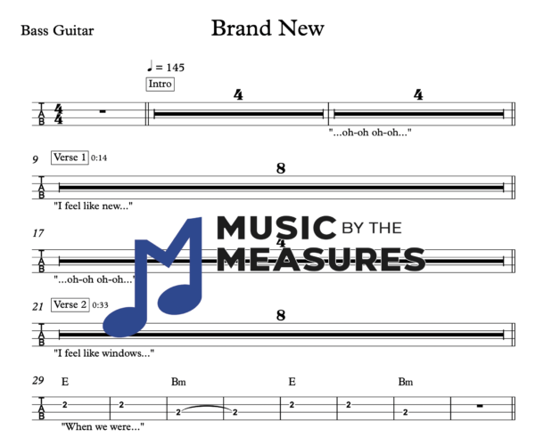Bass Guitar Tablature for “Brand New” by Ben Rector