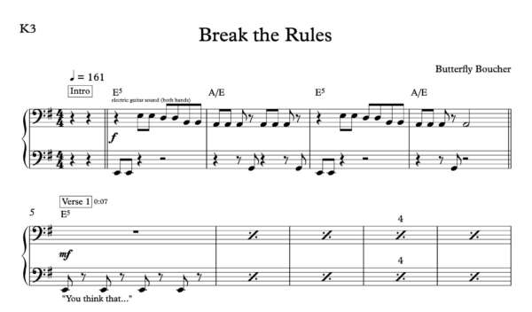 Keyboard Sheet Music for “Break the Rules” by Butterfly Boucher