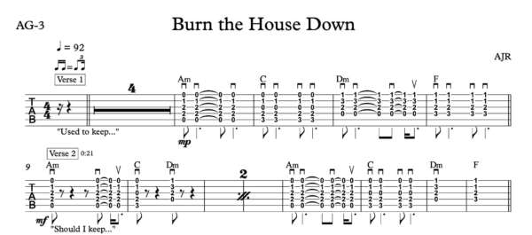 Strum Guitar Tablature for “Burn the House Down” by AJR