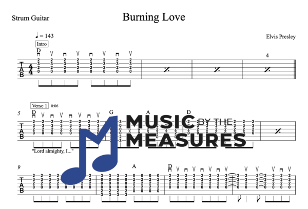 Strum Guitar Tablature for “Burning Love” by Elvis Presley