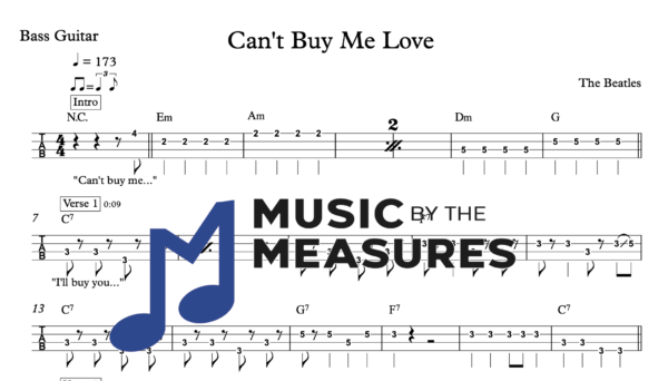 Bass Guitar Tablature for “Can’t Buy Me Love” by The Beatles