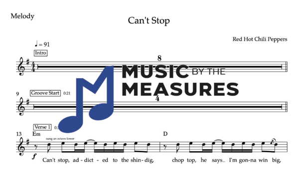 Melody Sheet Music for “Can’t Stop” by Red Hot Chili Peppers