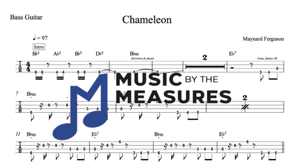 Bass Guitar Tablature for “Chameleon” by Maynard Ferguson