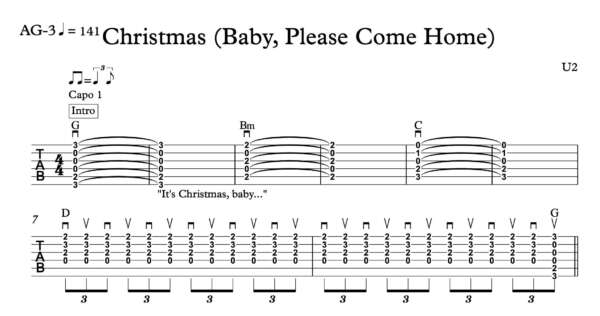 Strum Guitar Tablature for “Christmas (Baby, Please Come Home)