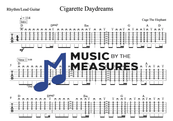Rhythm Guitar Tablature for “Cigarette Daydreams” by Cage The Elephant