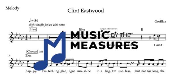 Melody Sheet Music for “Clint Eastwood” by the Gorrilaz