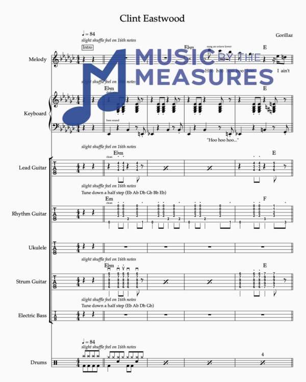 Full Band Sheet Music for “Clint Eastwood” by the Gorrilaz