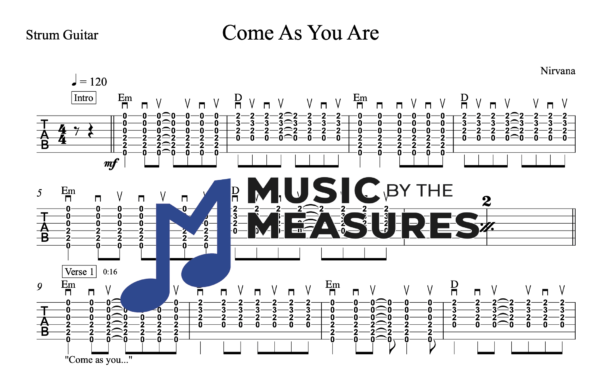 Strum Guitar Tablature for “Come As You Are” by Nirvana