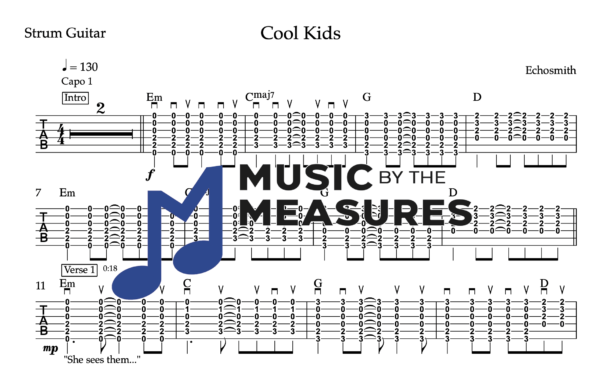 Strum Guitar Tablature for “Cool Kids” by Echosmith