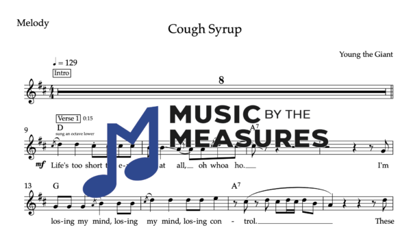 Melody Sheet Music for “Cough Syrup” by Young the Giant