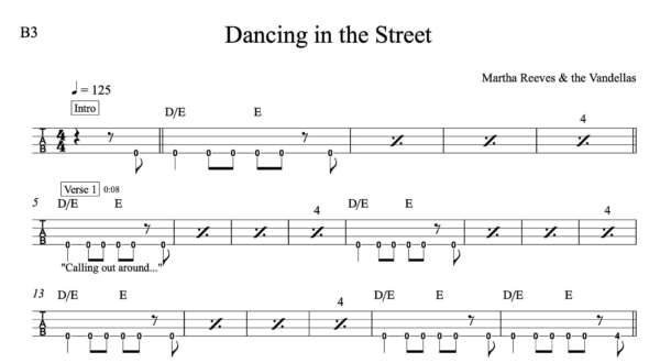 Bass Guitar Tablature for “Dancing in the Street” by Martha Reeves & the Vandellas