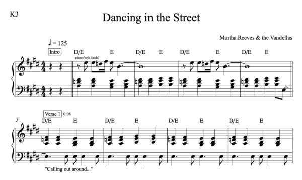 Keyboard Sheet Music for “Dancing in the Street” by Martha Reeves & the Vandellas