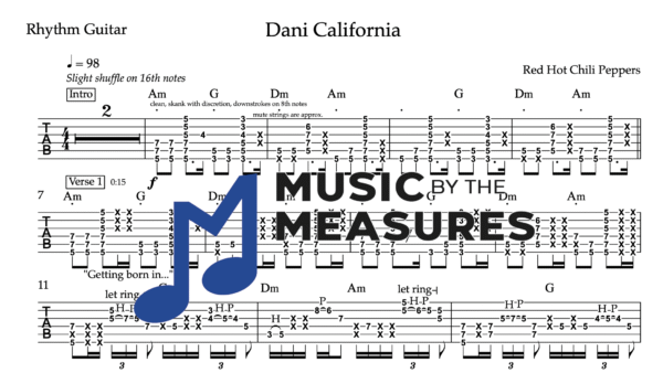 Rhythm Guitar Tablature for “Dani California” By the Red Hot Chili Peppers