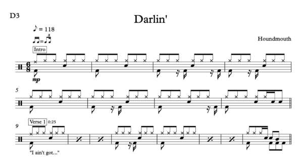 Drum Sheet Music for “Darlin'” by Houndmouth