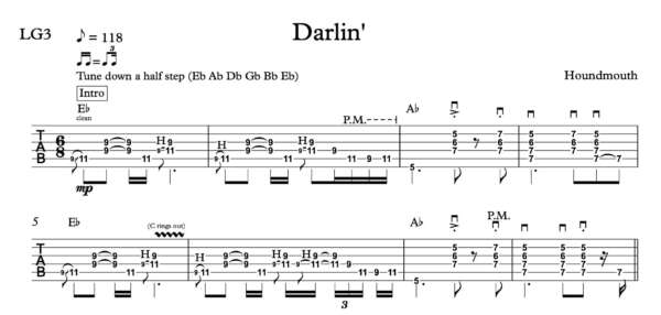 Lead Guitar Tablature for “Darlin'” by Houndmouth