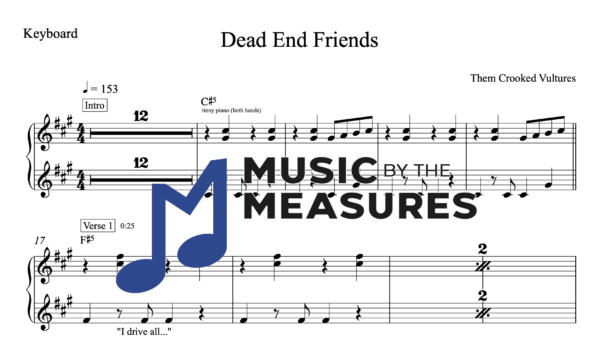 Keyboard Sheet Music for “Dead End Friends” by Them Crooked Vultures
