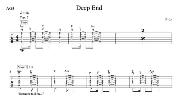 Strum Guitar Tablature for “Deep End” by Birdy