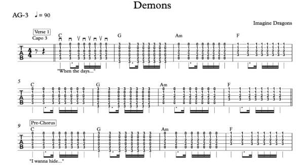 Strum Guitar Tablature for “Demons” by Imagine Dragons
