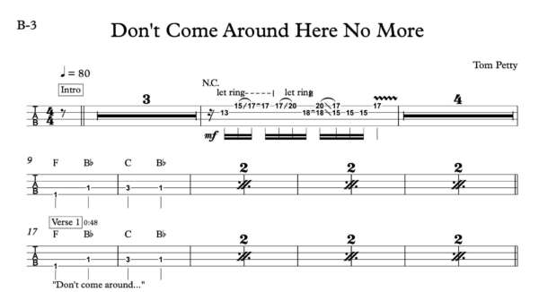 Bass Guitar Tablature for “Don’t Come Around Here No More” By Tom Petty