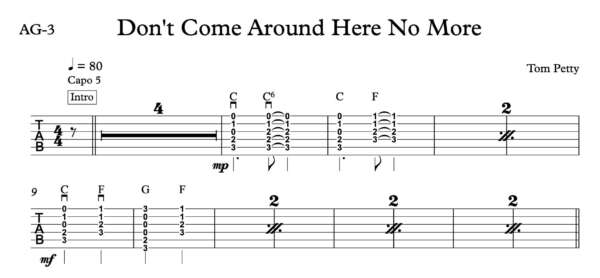 Strum Guitar Tablature for “Don’t Come Around Here No More” By Tom Petty