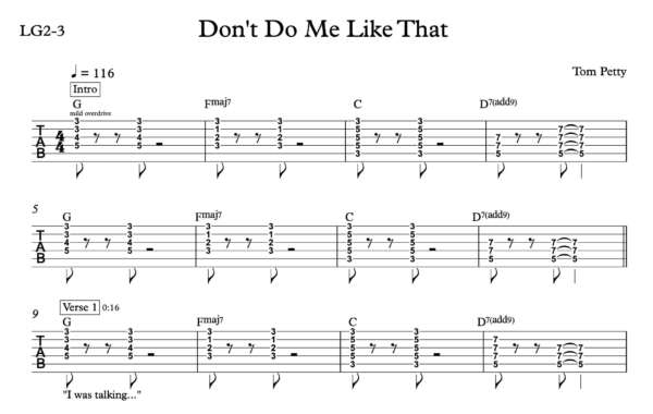 Rhythm Guitar Tablature for “Don’t Do Me Like That” by Tom Petty