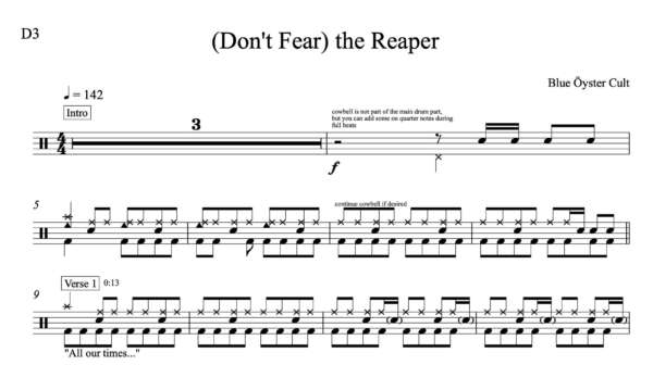 Drum Sheet Music for “Don’t Fear The Reaper” by Blue Öyster Cult
