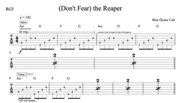 Rhythm Guitar Tablature for “Don’t Fear The Reaper” by Blue Öyster Cult