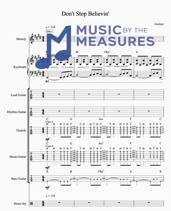 Full Band Sheet Music for “Don’t Stop Believin'” by Journey