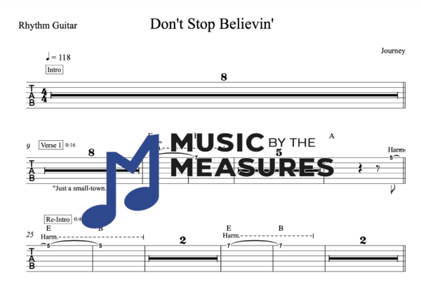 Rhythm Guitar Tablature for “Don’t Stop Believin'” by Journey