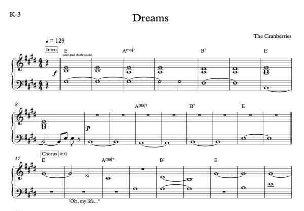 Keyboard Sheet Music for “Dreams” by The Cranberries