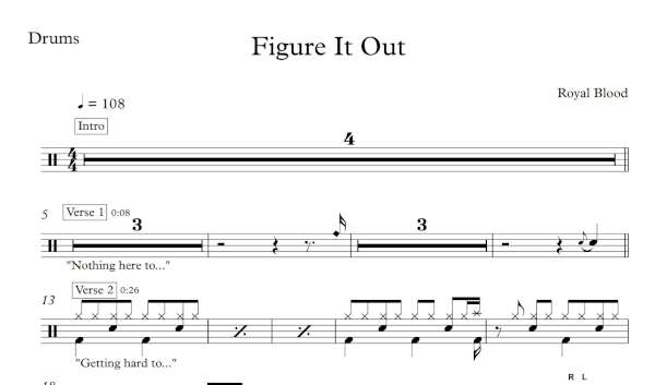 Drum Sheet Music for “Figure It Out” by Royal Blood.